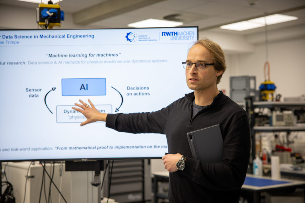 Begrüßt wurden wir von Prof. Dr. Holger Hoos, Alexander von Humboldt Professor am Lehrstuhl für Methodik der Künstlichen Intelligenz, Prof. Dr. Sebastian Trimpe, Vorstandsvorsitzender des KI-Centers, und Dr. Julia Mann, Geschäftsführerin des KI -Centers, die mit beeindruckendem Engagement an den Fragen der Zukunft forschen. Im Mittelpunkt unseres Austauschs stand eine zentrale Frage: